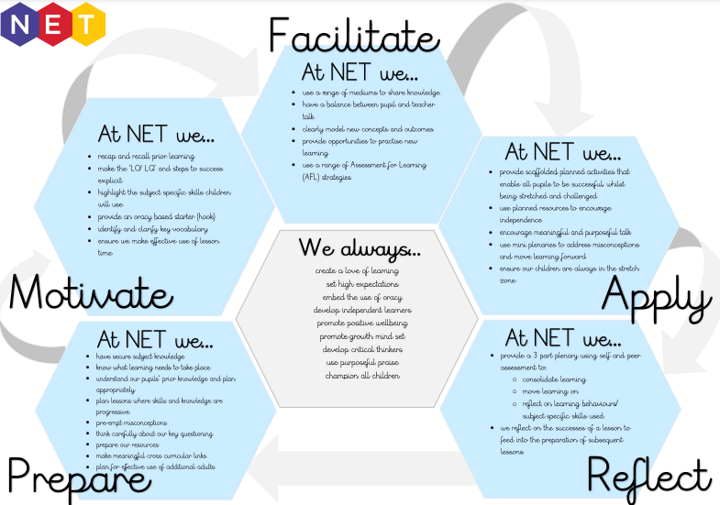 Our teaching and learning policy highlights our consistent pedagogical approach across all subjects (click the image to enlarge):